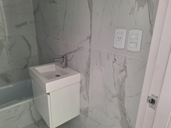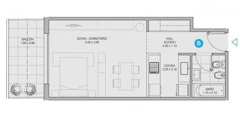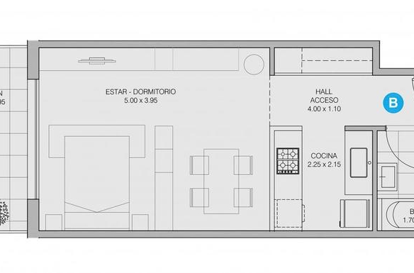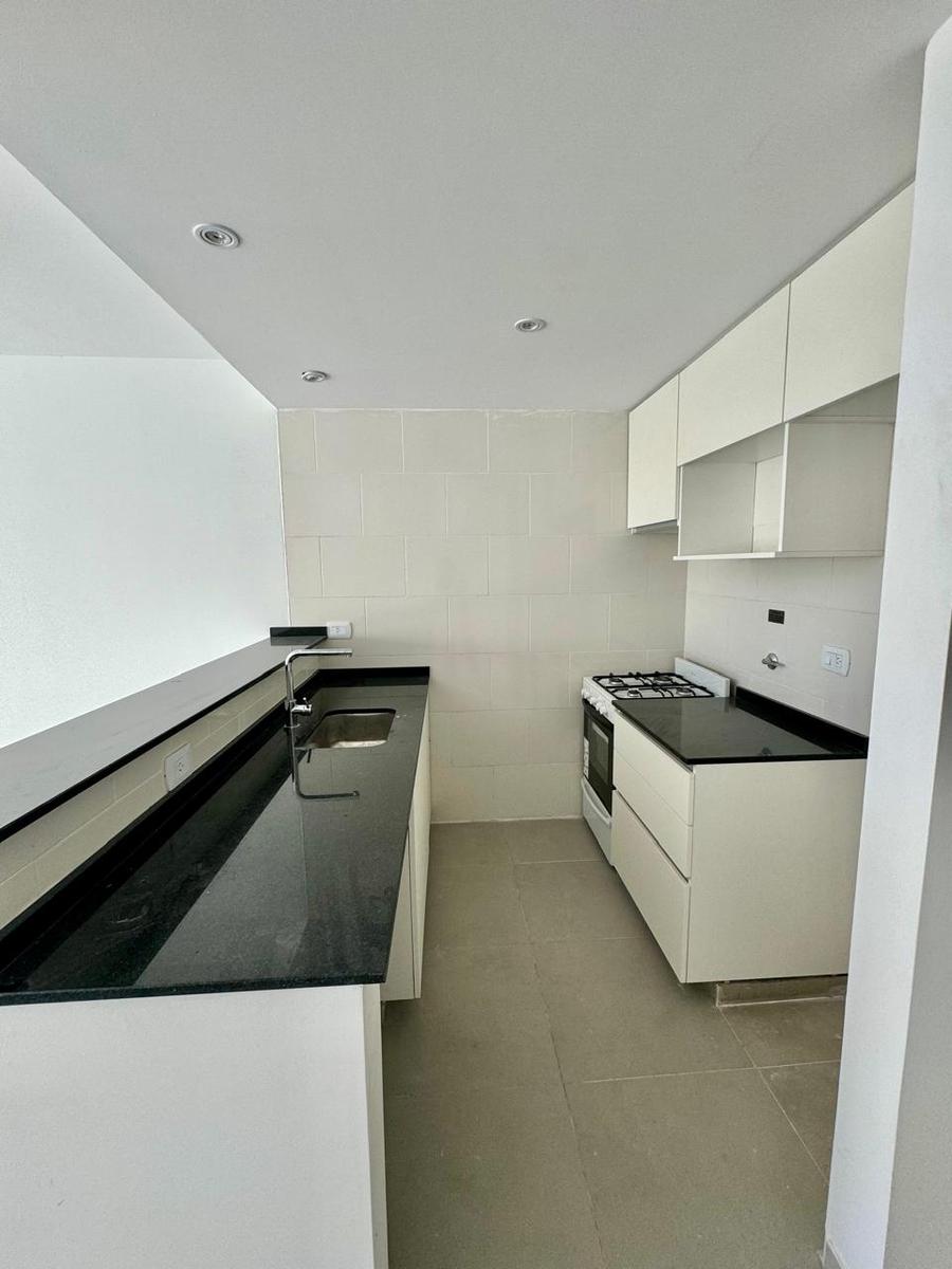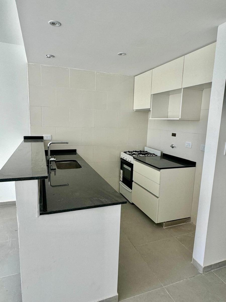 Características de la Unidad• Puerta blindada marca Pentágono• Carpintería exterior con marcos y hojas en aluminio anodizado color blanco con vidrio DVH (termoacústico)• Persiana automatizada• Cocina integrada con barra desayunadora, mesada de granito negro brasil y muebles alto y bajo mesada• Mesada de granito negro brasil con bacha simple de acero inoxidable marca Jhonson.• Pisos de living en porcelanato• Baño completo con grifería monocomando marca Hidromet• Revestimientos con porcelanato• Frente de placard en melamina• Cuenta con la pre instalación para Aire Acondicionado, Internet y Video Cable• Conexión para instalación de lavarropas• Portero visor color• Posesión inmediata