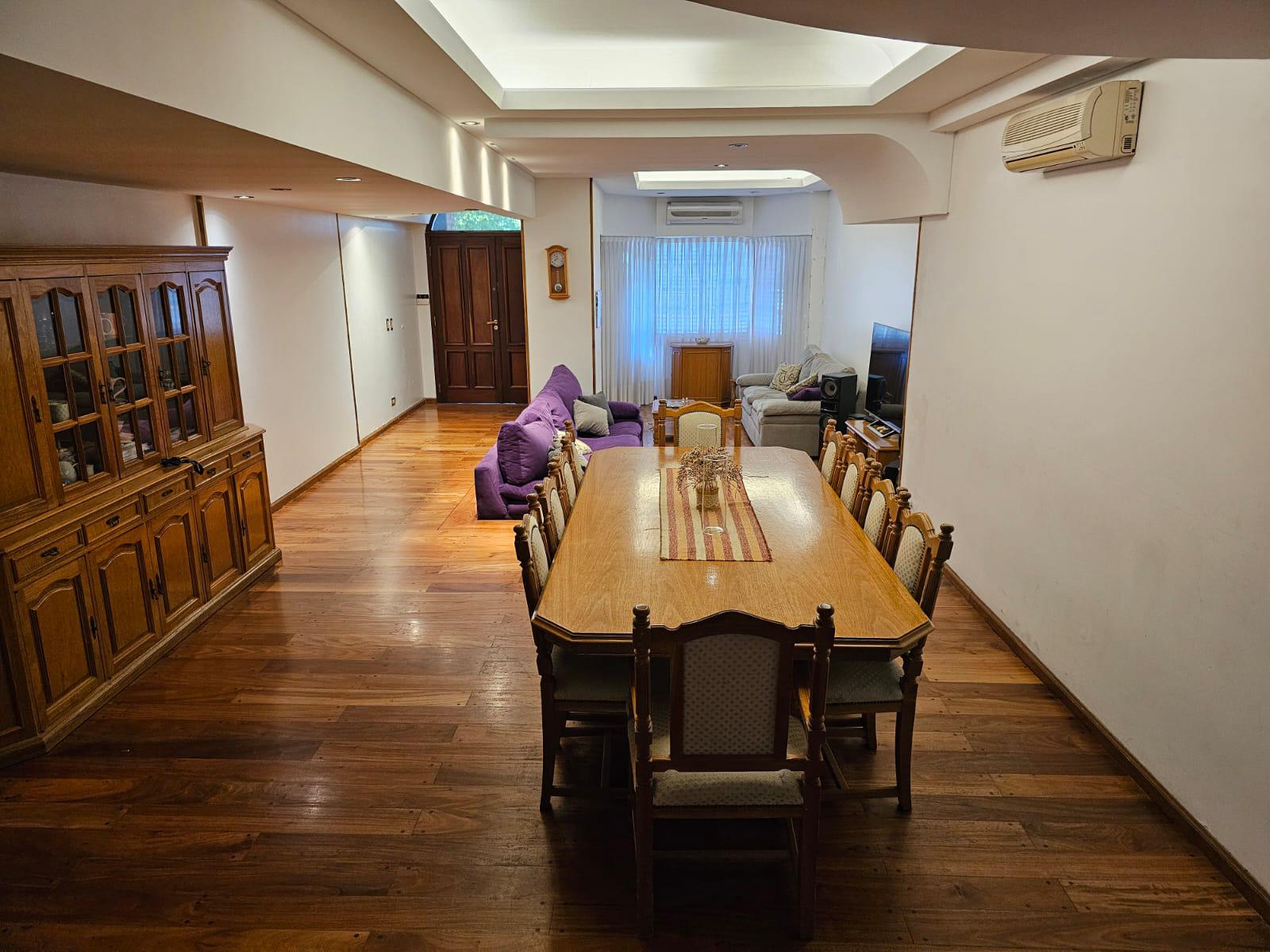 En Planta Baja cuenta con amplio living comedor con desnivel al frente con pisos de madera tarugados, toilette de recepción