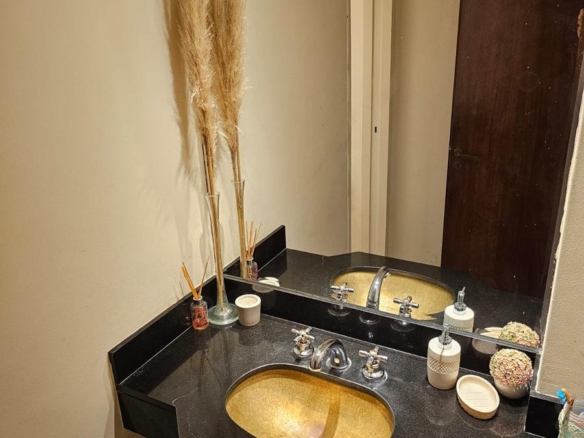 Baño completo y dos cocheras cubiertas con portones automatizados.