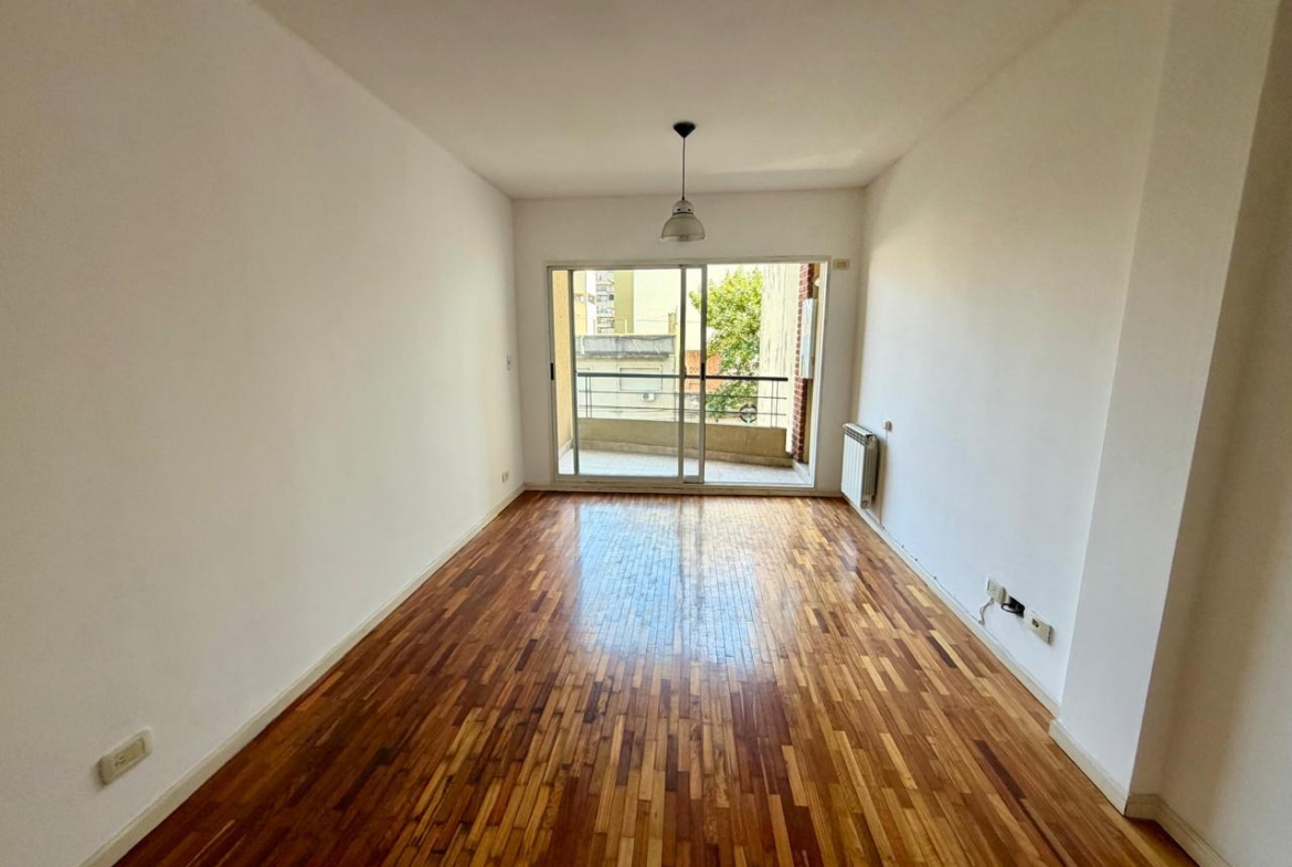 Cocina semi integrada, separada con barra desayunadora, completa con alacena y bajo mesada