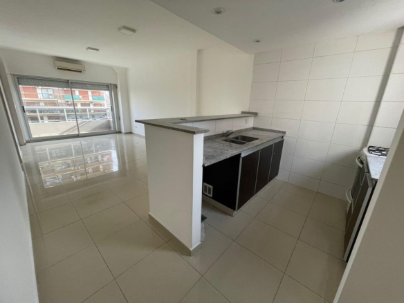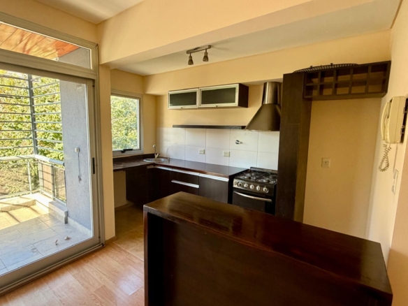 Cocina integrada con barra desayunadora y espacio para lavarropas